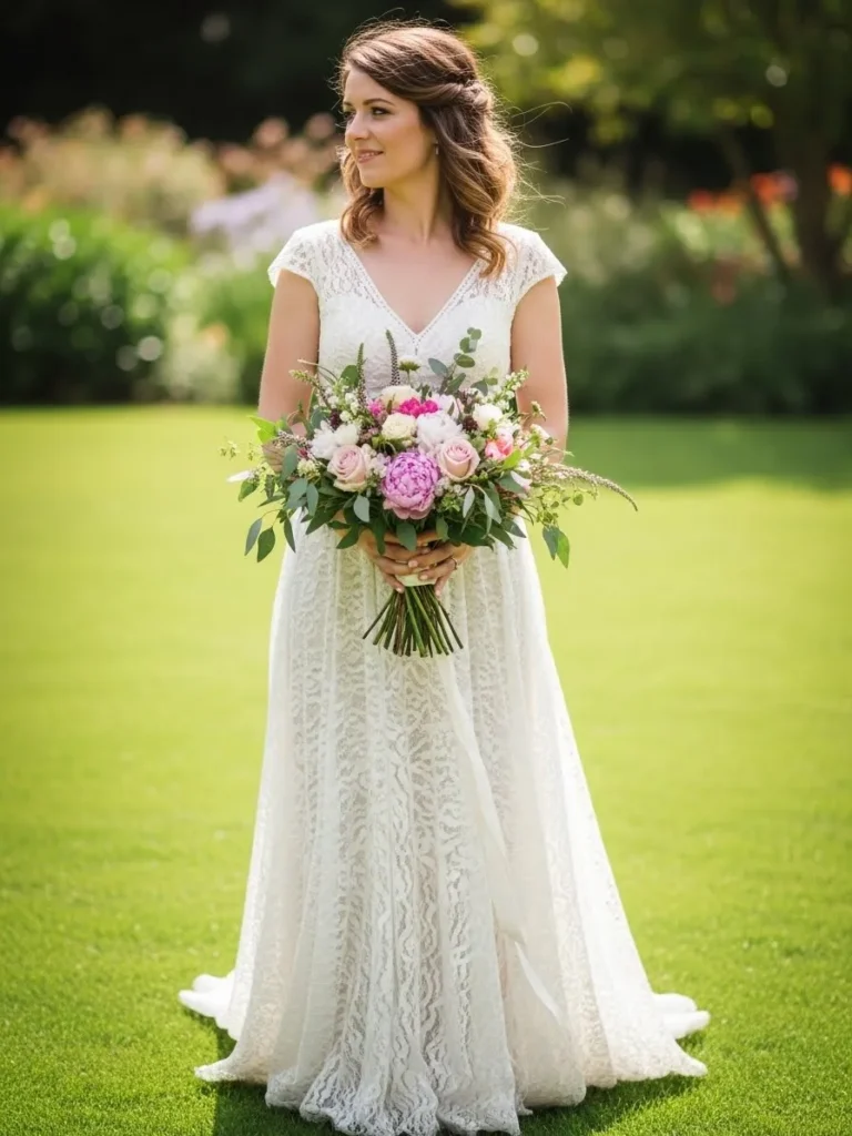 Lace Bridal Dress With Garden Bouquet