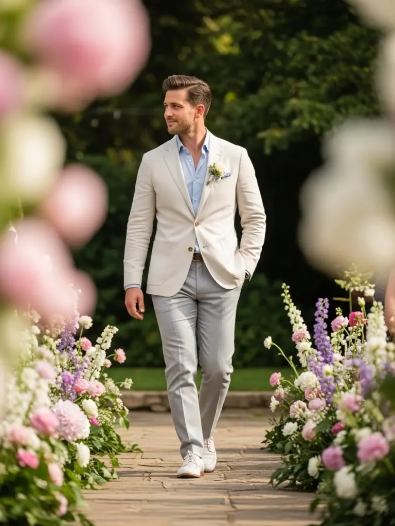 Light Linen Groom Garden Look