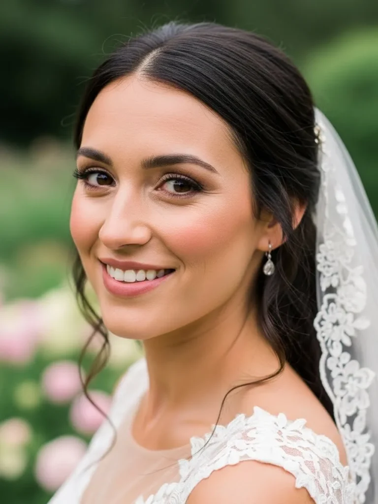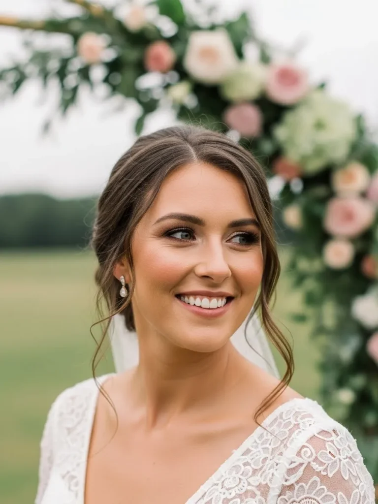 This style feels like a true bridal classic. I love how it enhances natural beauty while still feeling special enough for a wedding day. It works beautifully in warm light and always looks refined.