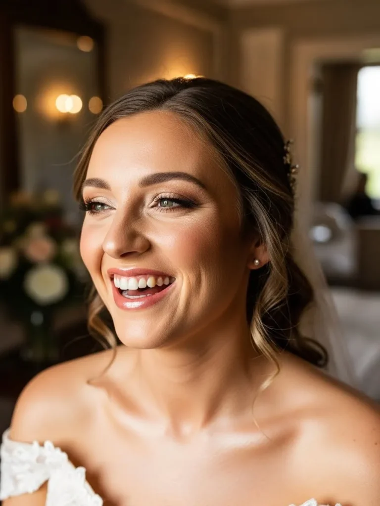 Soft Glam Bridal Makeup With Warm Indoor Light