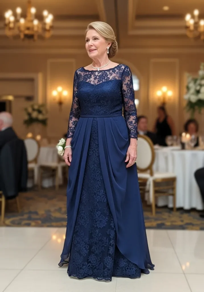 I find navy lace incredibly captivating for formal evenings because it feels classic, romantic, and effortlessly polished. This look manages to be bold and graceful at the same time, which always makes it a standout choice.