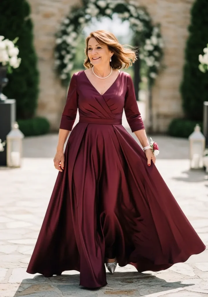 I cannot get over how stunning this color looks for formal events, especially in romantic settings. The richness of the burgundy paired with the silky texture makes this gown feel powerful, confident, and undeniably glamorous.