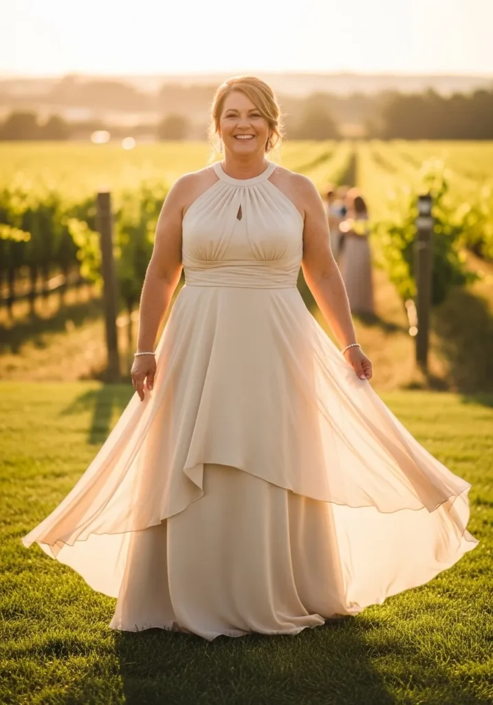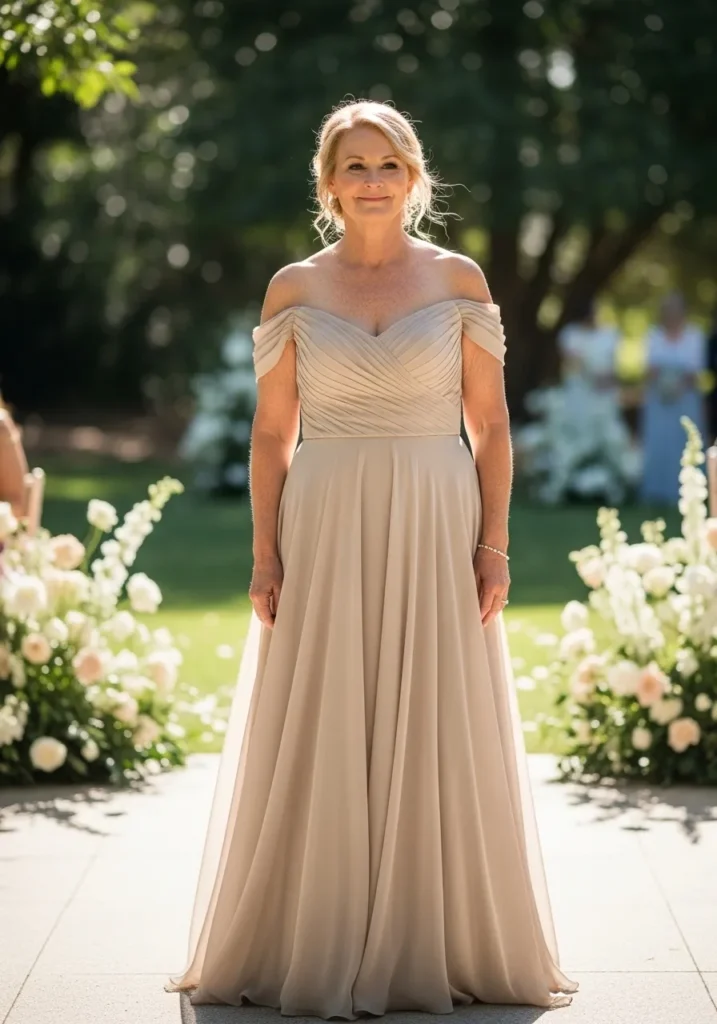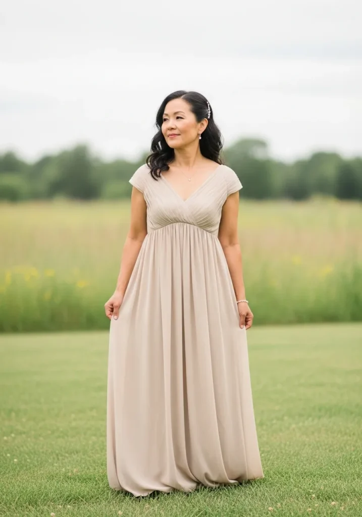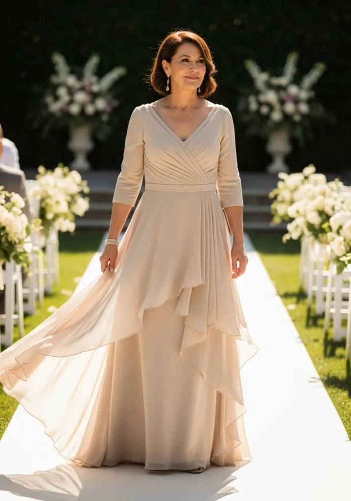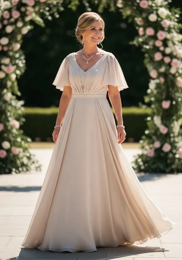 I love how effortless this style feels while still looking polished and elegant. It has that perfect balance of comfort and beauty, which makes it ideal for a mother of the bride who wants to feel confident, graceful, and completely at ease on such an emotional day.
