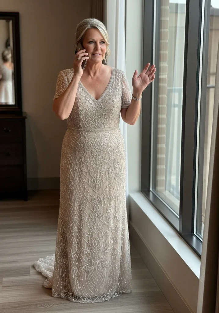 This style feels so timeless to me. It is one of those dresses that will never look dated in photos, and I love how flattering and graceful the silhouette feels for a mother of the bride.