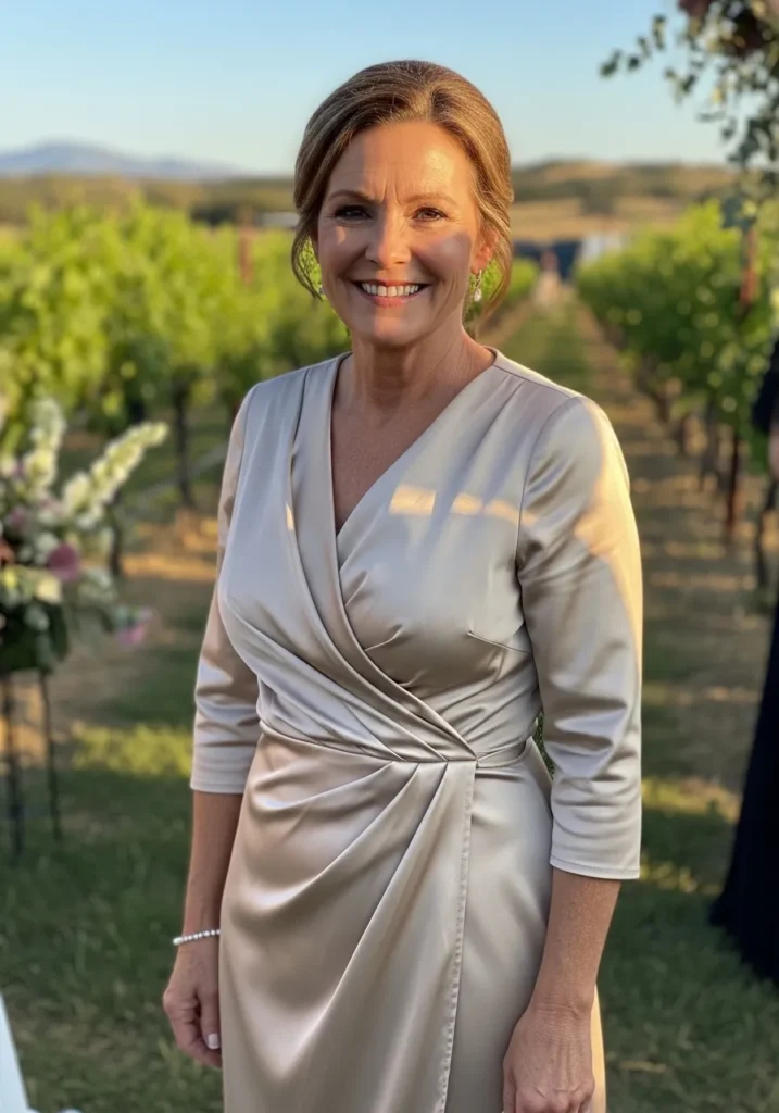 This is one of those dresses that just works. It feels easy, flattering, and sophisticated all at once, and I love how it gives that classic mother of the bride elegance without trying too hard.