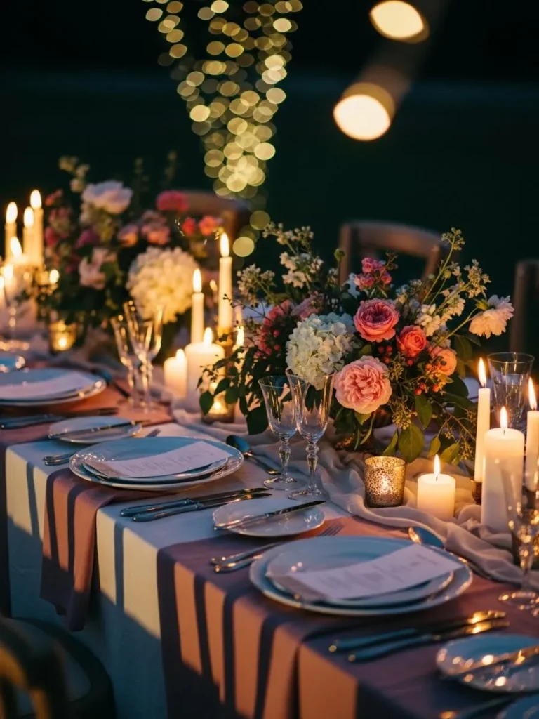 This is the kind of table that makes me want to linger long after dinner. I love how romantic it feels without being too formal. The candlelight adds instant magic and makes the whole setting feel intimate and special.