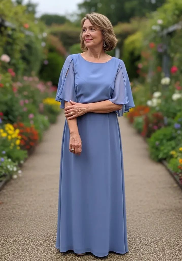 Classic Dusty Blue Gown with Relaxed Elegance