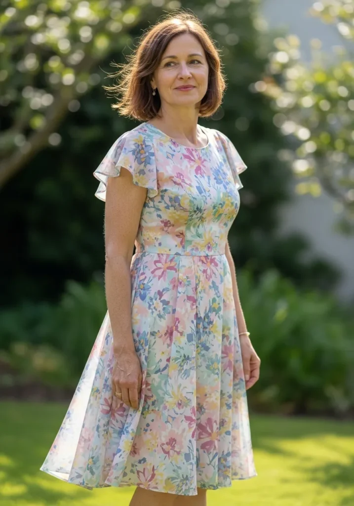 I always love how floral dresses instantly feel cheerful and welcoming. If you are into soft color palettes and relaxed elegance, this style brings a joyful touch that feels both youthful and beautifully refined.