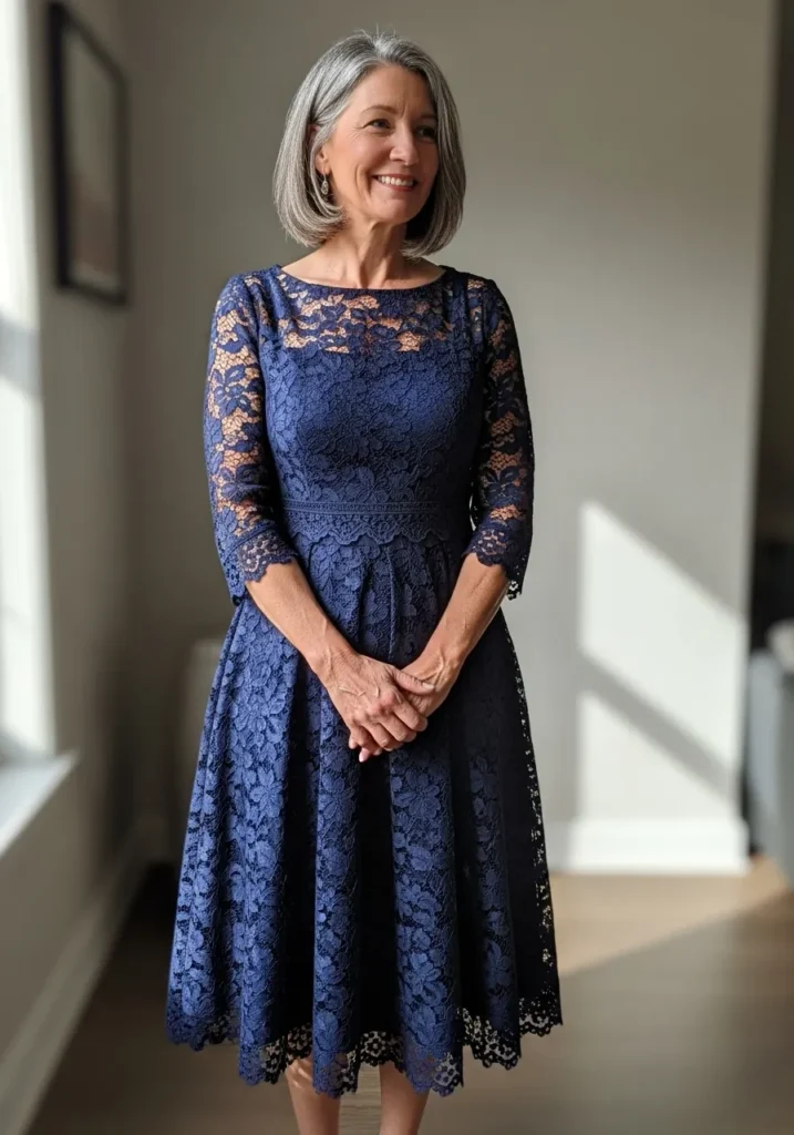 Navy Lace Midi Dress with Classic Elegance
