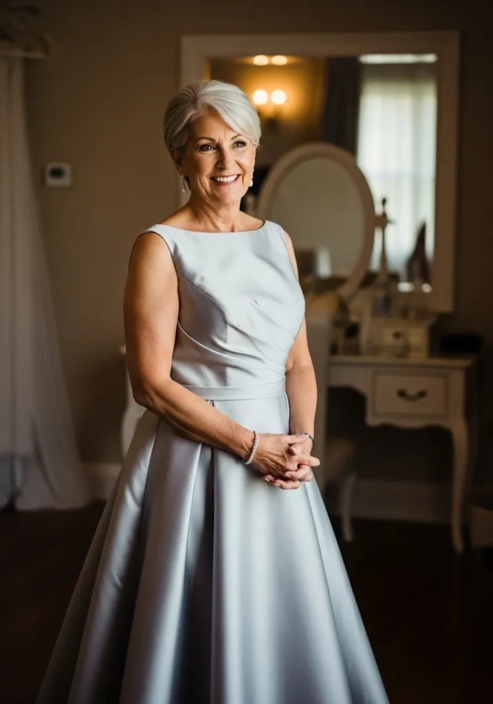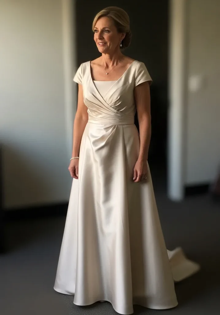 Soft Silver Satin Gown with Classic Structure