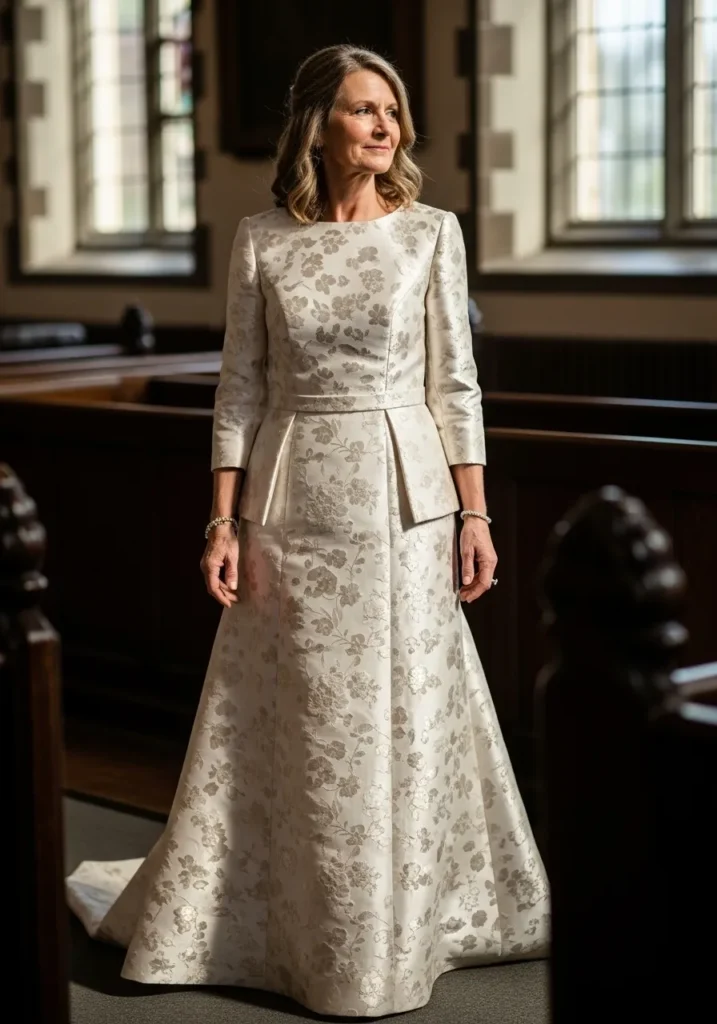 Ivory Jacquard Gown with Vintage Charm