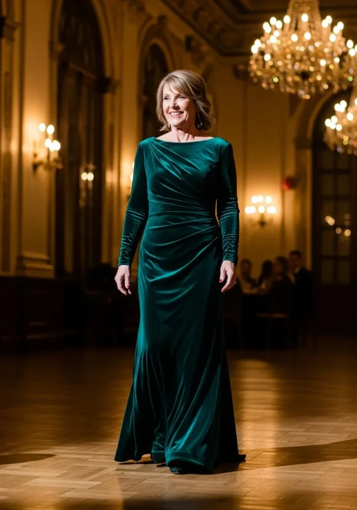 Emerald Velvet Gown with Dramatic Sophistication