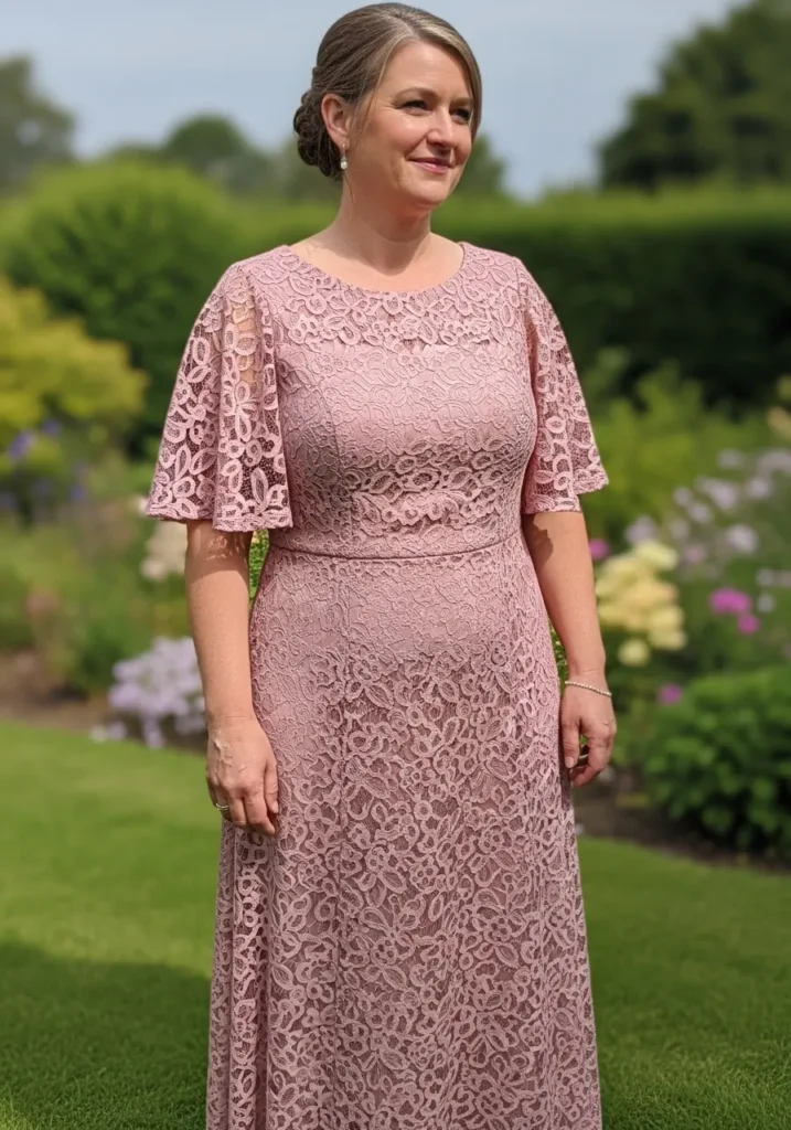 Dusty Rose Lace Dress with Soft Flutter Sleeves