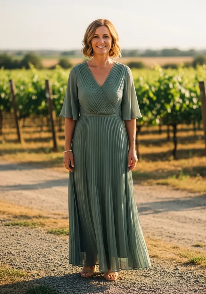 Sage Green Pleated Gown with Vineyard Charm