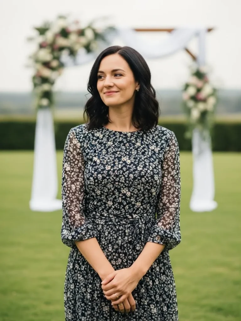 I love how effortless this look feels for a summer wedding. It has that relaxed romance that works beautifully outdoors, and the floral pattern feels timeless rather than trendy. This is the kind of dress I always feel comfortable and confident wearing from ceremony to dinner.