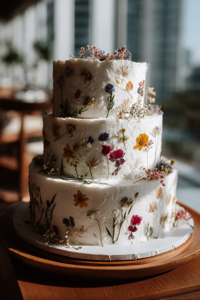 Whimsical Pressed Flower Wedding Cake
